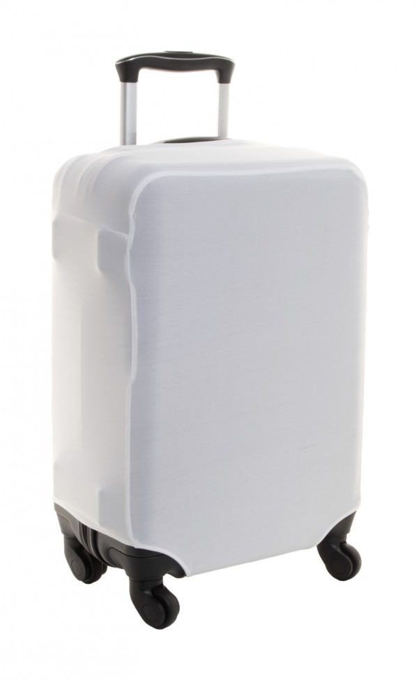 Husă de bagaje din poliester, cu închidere cu velcro. Se potrivește valizelor de dimensiuni mici de până la 50x70x30 cm. Cu grafică imprimată prin sublimare. MOQ: 25 buc.