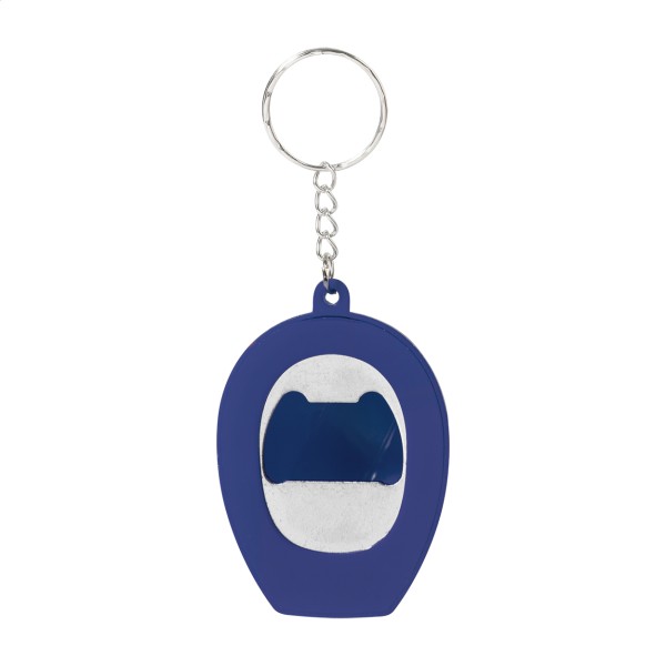 Breloc în formă de cască de protecție, din ABS reciclat, cu deschizător de sticle.