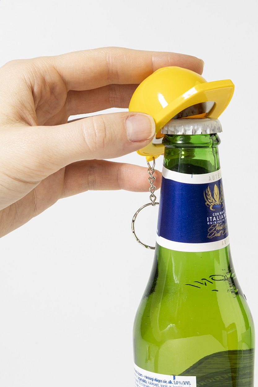 Breloc în formă de cască de protecție, din ABS reciclat, cu deschizător de sticle.
