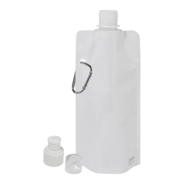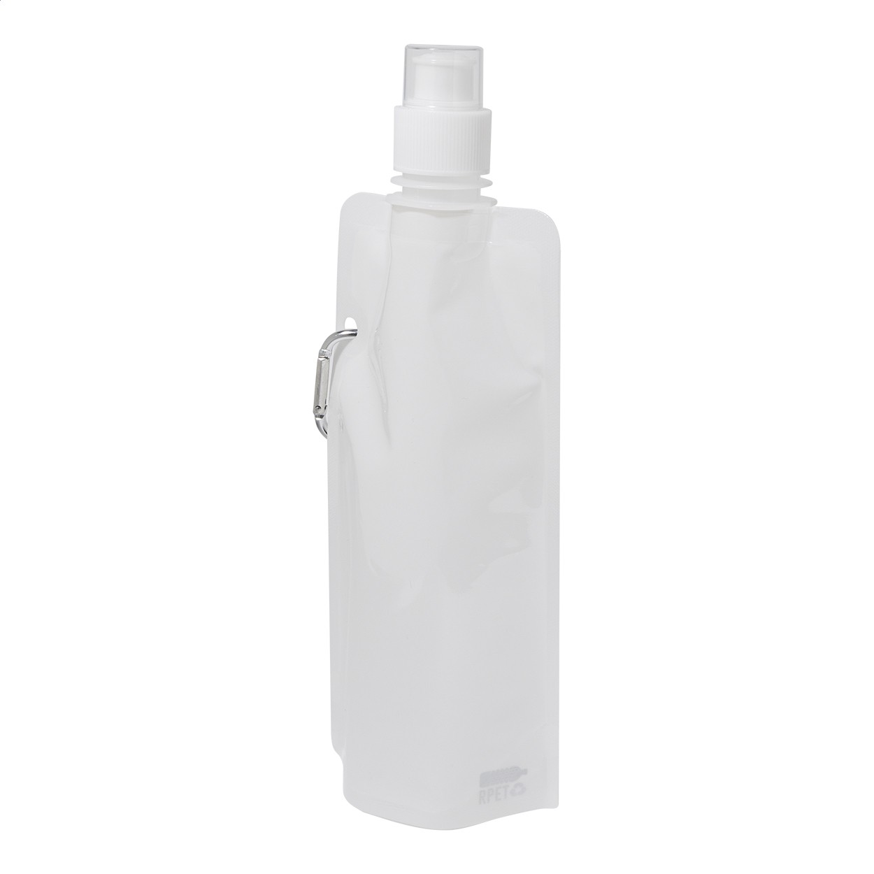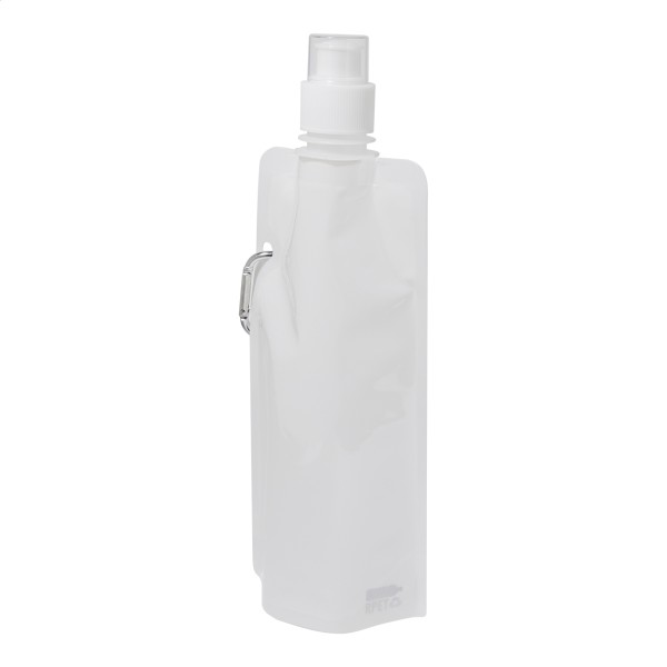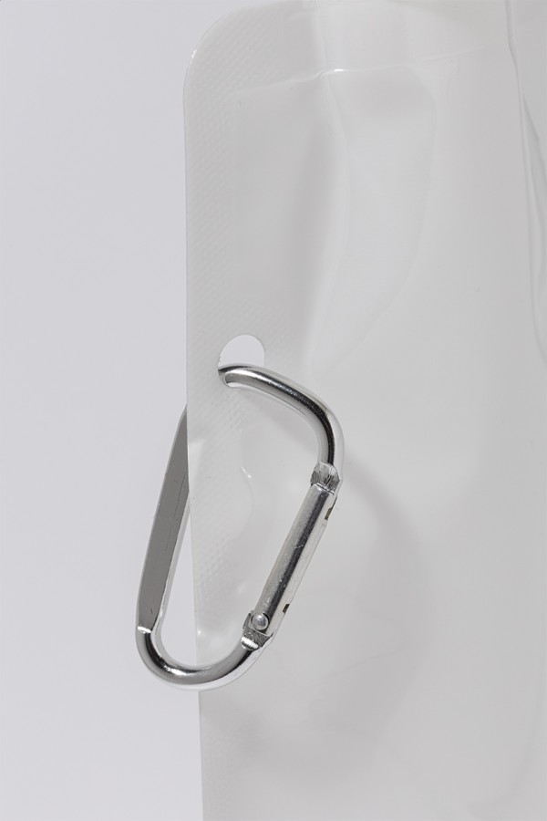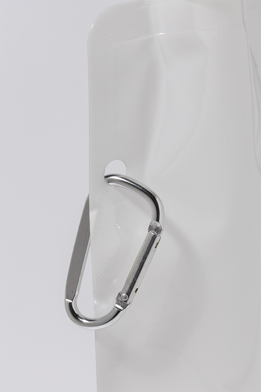 Sticlă sport pliabilă, din RPET cu capac pentru băut și carabină din aluminiu, 500 ml. Fără BPA. Nu este potrivită pentru băuturi carbogazoase.
