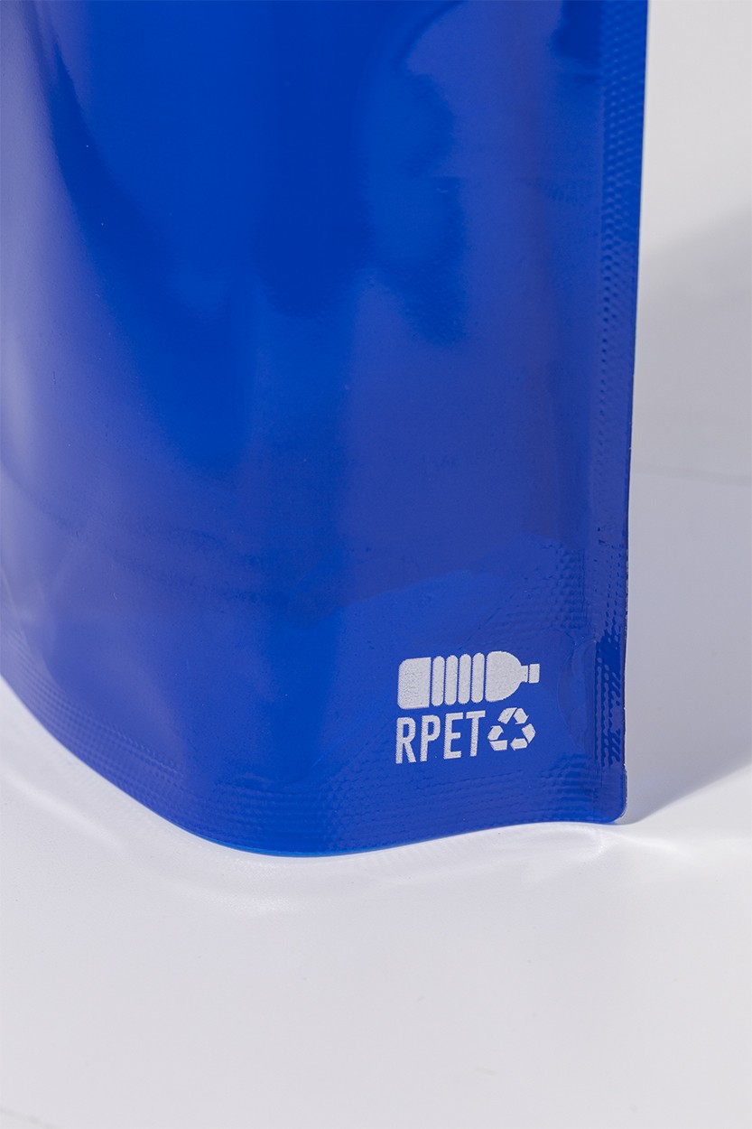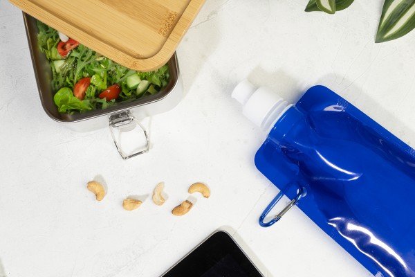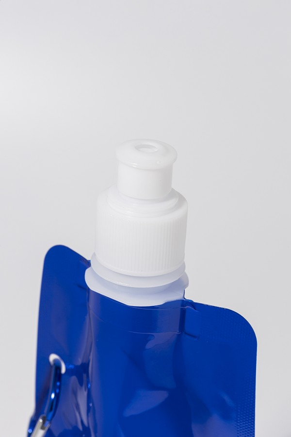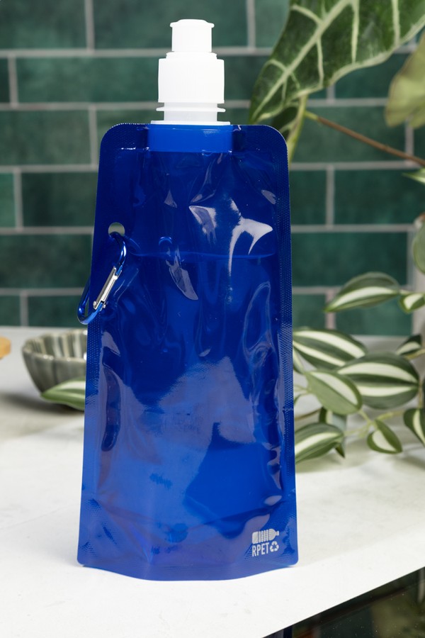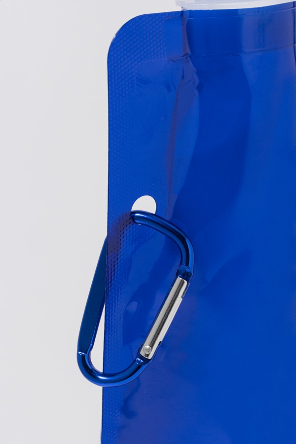 Sticlă sport pliabilă, din RPET cu capac pentru băut și carabină din aluminiu, 500 ml. Fără BPA. Nu este potrivită pentru băuturi carbogazoase.