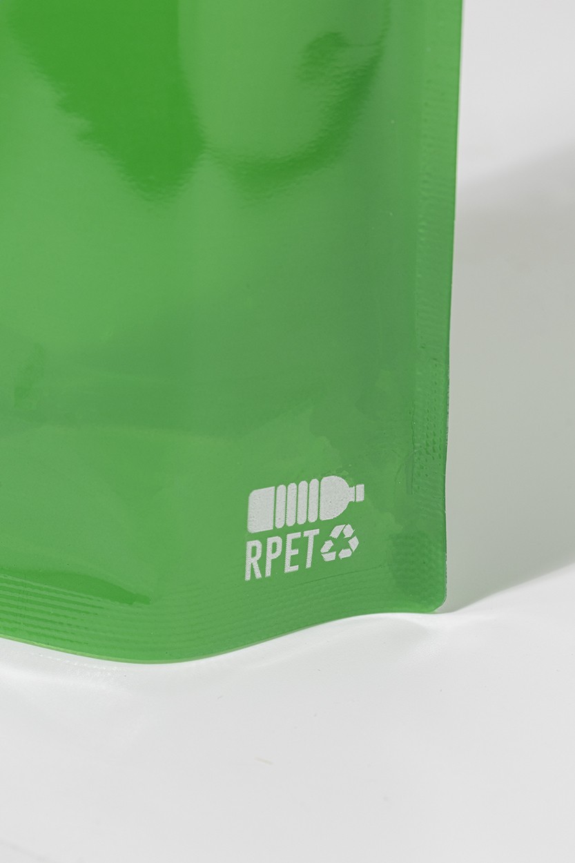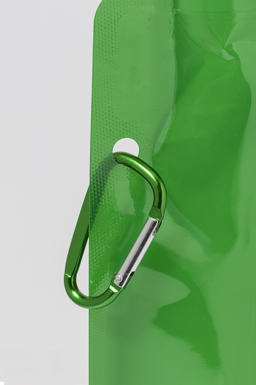 Sticlă sport pliabilă, din RPET cu capac pentru băut și carabină din aluminiu, 500 ml. Fără BPA. Nu este potrivită pentru băuturi carbogazoase.