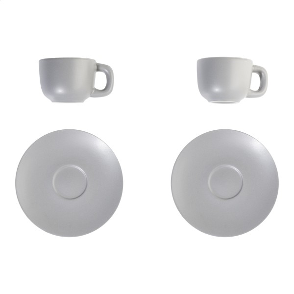Set cești espresso, din ceramică de înaltă calitate, cu 2 cești și farfurioare. Cu finisaj mat exterior și lucios interior. 85 ml. În cutie de hârtie kraft.