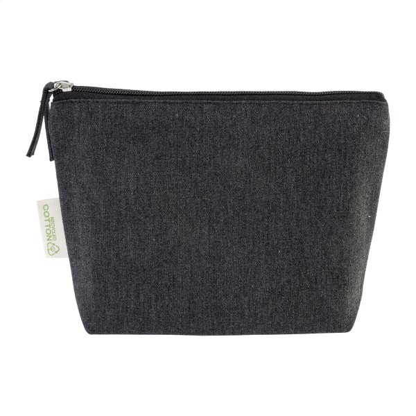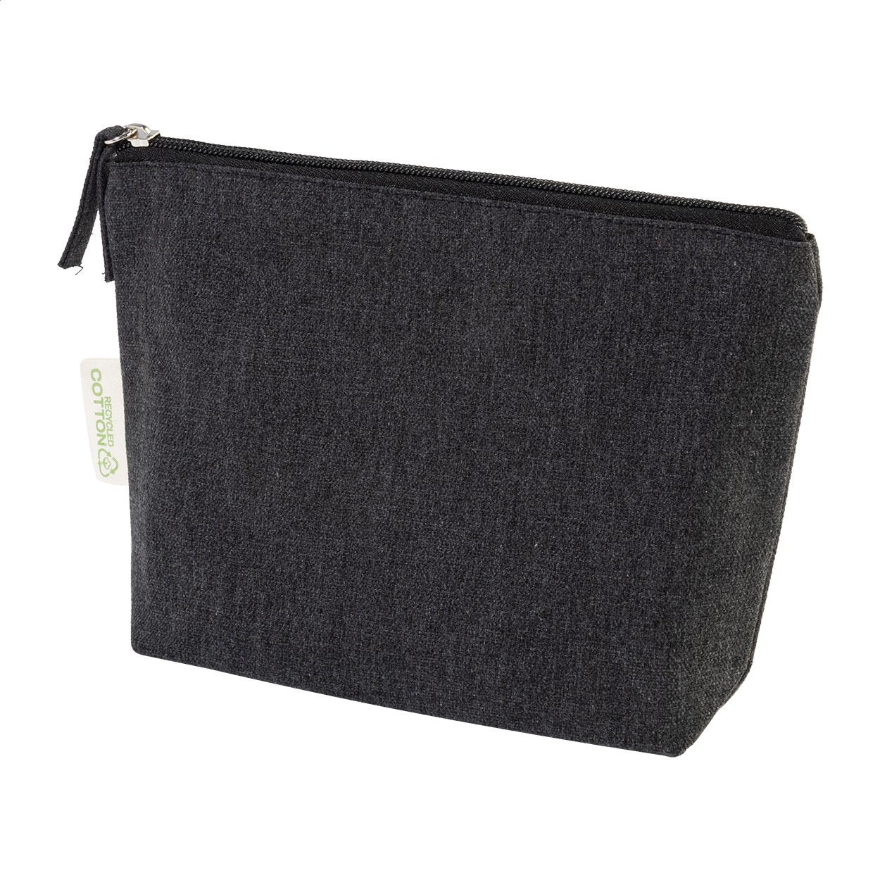 Geantă cosmetică, cu fermoar, din 70% bumbac reciclat și 30% poliester RPET, 280 g/m². Cu etichetă distinctivă din bumbac reciclat.