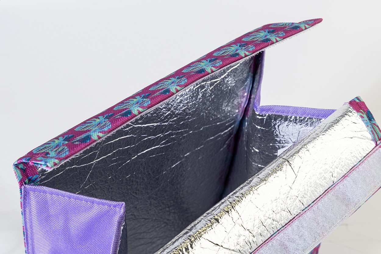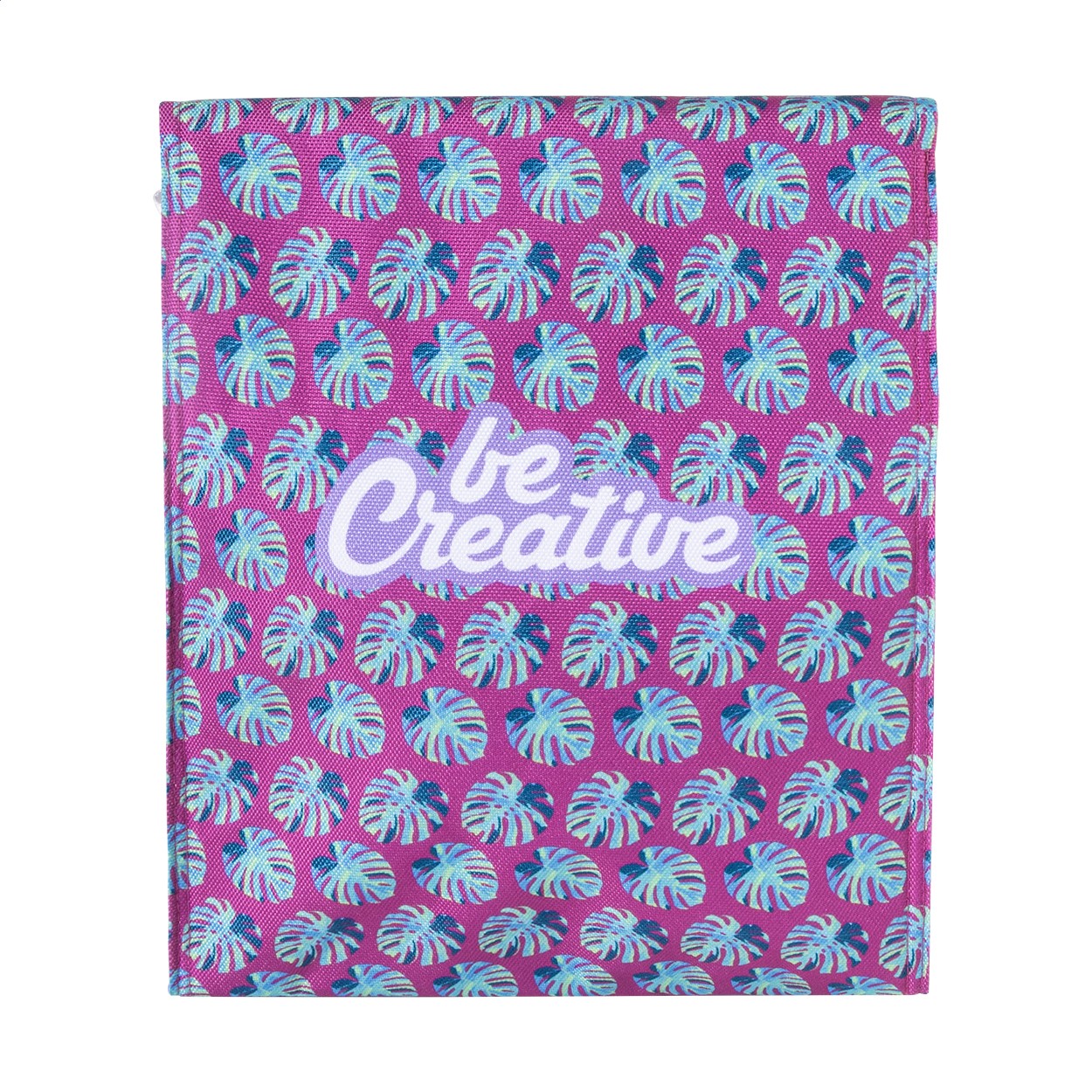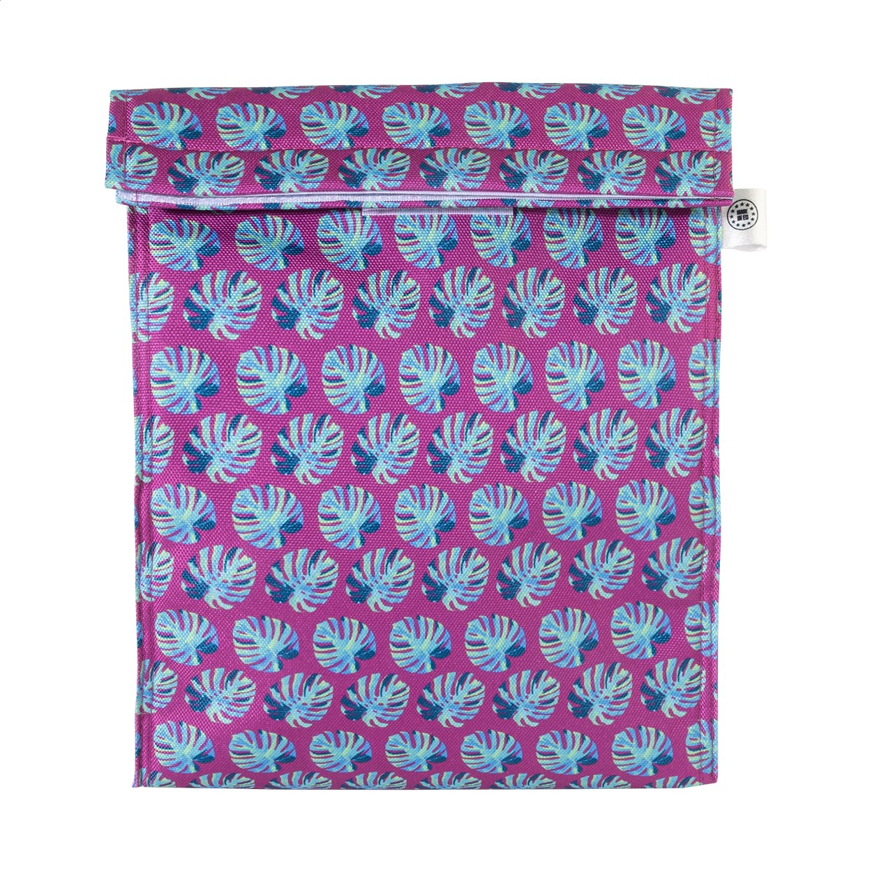 Geantă termică, pentru prânz, realizată la comandă, din poliester 600D RPET, cu căptușeală din aluminiu și închidere cu velcro. Cu grafică imprimată prin sublimare pe toată suprafața și etichetă RPET distinctivă. Cantitate minimă de comandă: 25 buc.