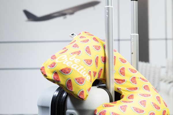 Pernă de călătorie, gonflabilă, din microfibră, realizată la comandă, cu husă RPET cu fermoar și imprimeu sublimat pe toată suprafața. 92% poliester RPET și 8% elastan (185 g/m²), cu etichetă RPET distinctivă. Cantitate minimă de comandă: 50 buc.