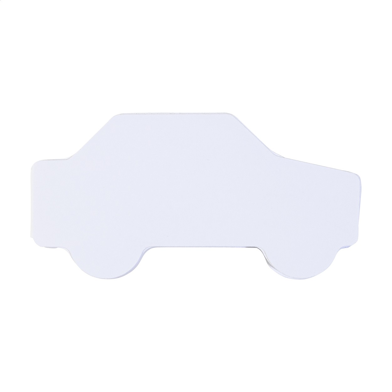 Carnet adeziv personalizat, acoperit cu hârtie, în formă de mașină. Include 50 de foi de hârtie reciclată adezivă. Prețul include coperta exterioară imprimată full color. Cantitate minimă de comandă: 100 bucăți.