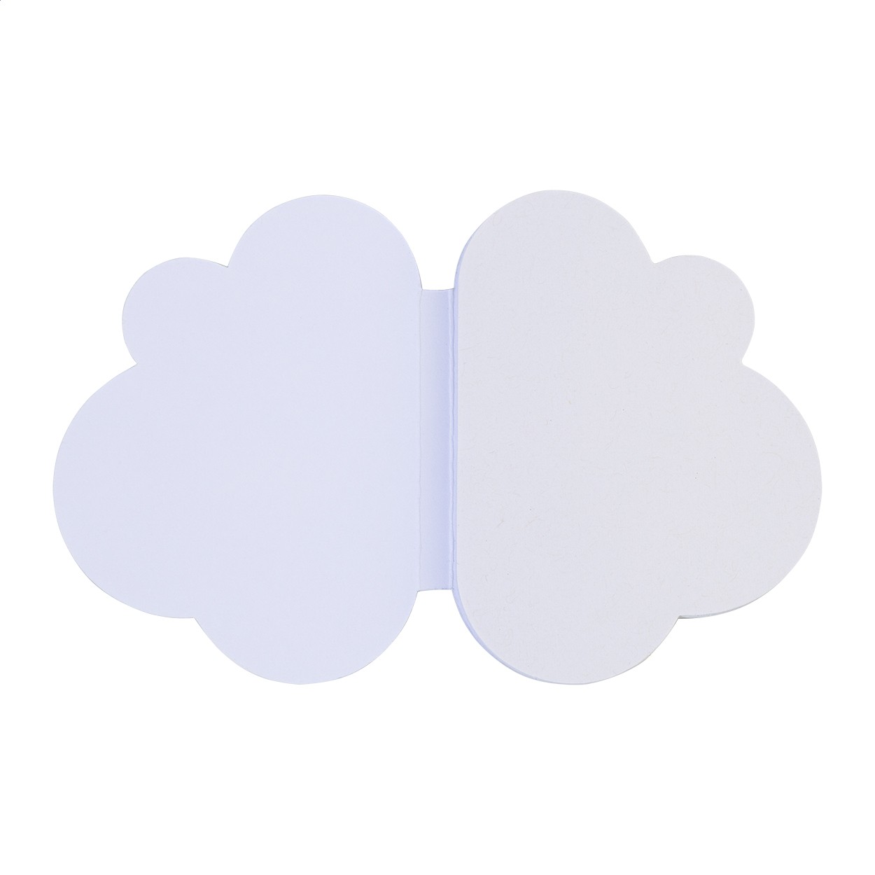 Carnet adeziv personalizat, în formă de nor, acoperit cu hârtie. Include 50 de foi de hârtie reciclată adezivă. Prețul include coperta exterioară imprimată full color. Cantitate minimă de comandă: 100 bucăți.