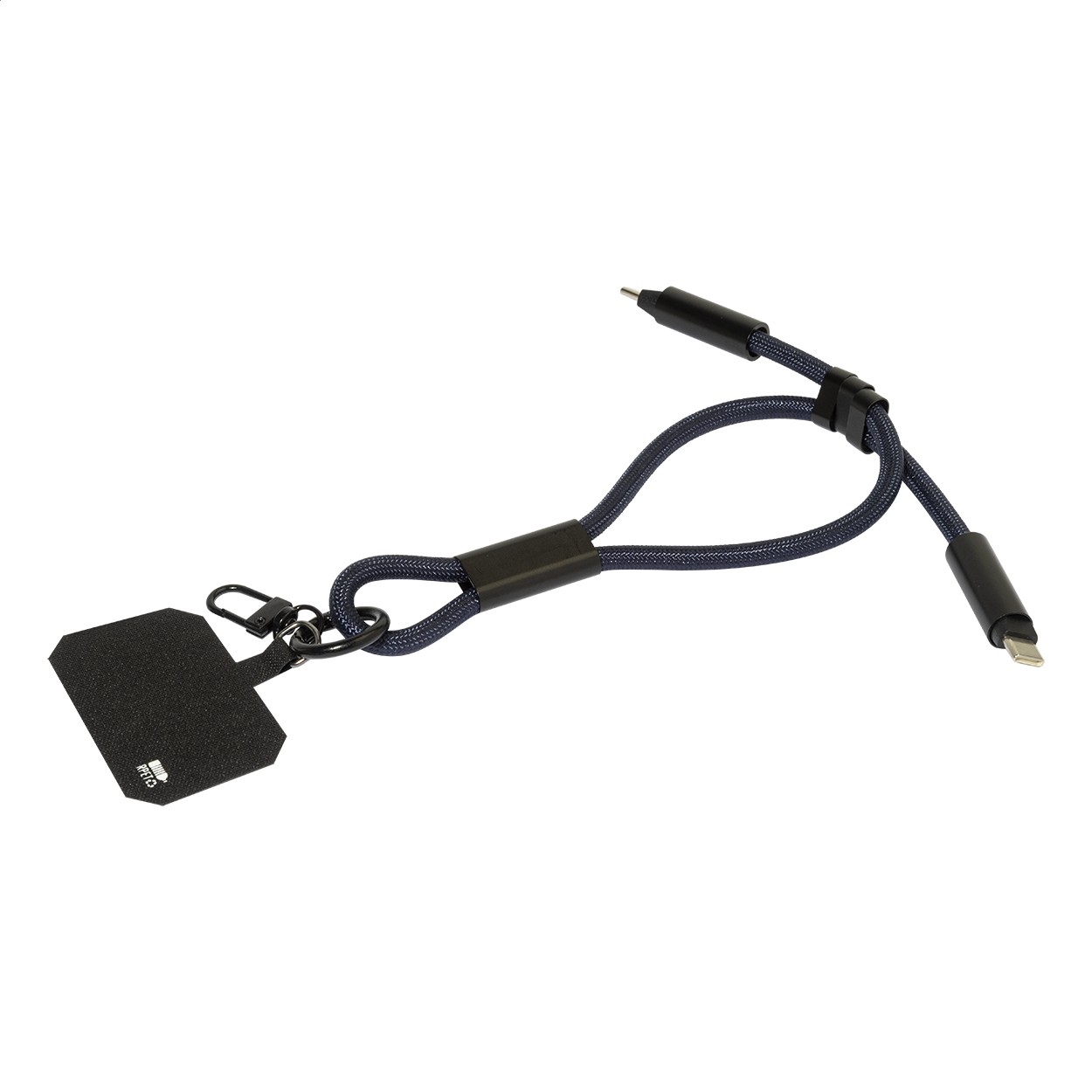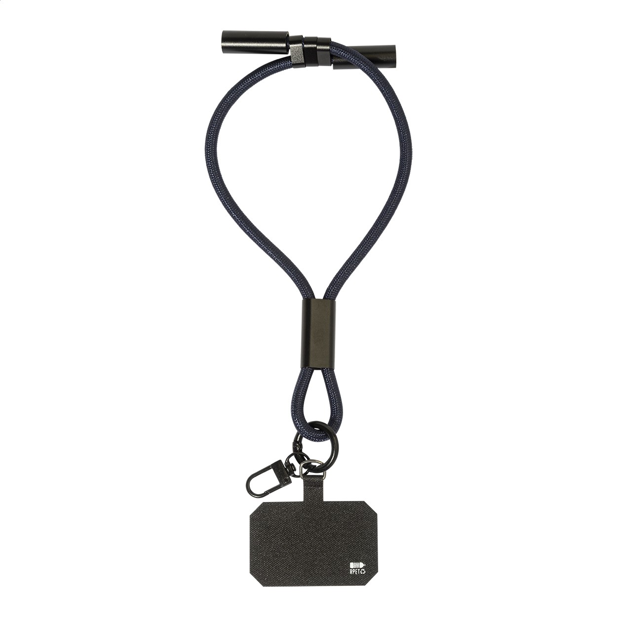 Brățară RPET, pentru telefon mobil ,cu inserție pentru telefon, carabină și cablu de încărcare USB-C la USB-C integrat cu conectori ascunși. Suportă încărcare rapidă PD de 60 W și transfer de date.