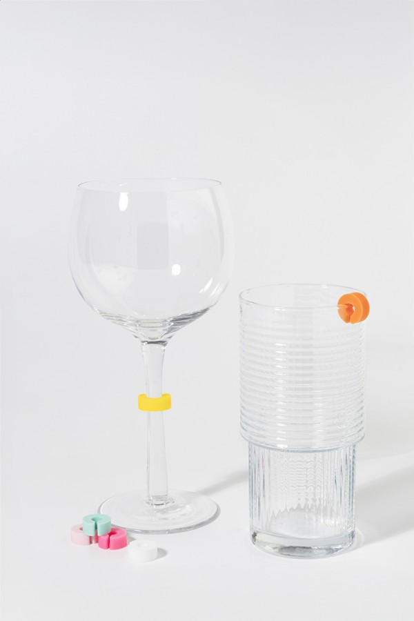 Set 12 bile colorate, de marcare, din silicon pentru sticlă, într-o cutie de depozitare din PP reciclat.