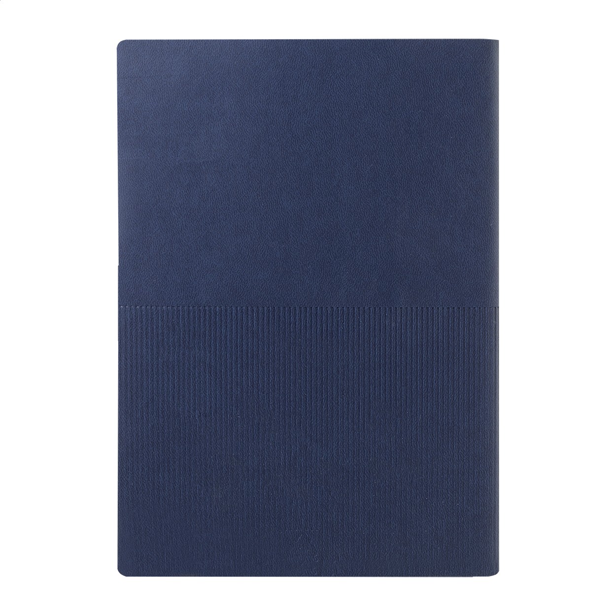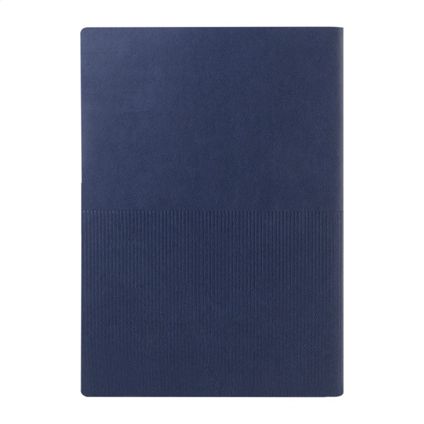 Caiet cu copertă din piele PU reciclată, cu decor în dungi și placă metalică cu logo. Cu semn de carte și 80 de file dictando din hârtie reciclată. Dimensiune A5.