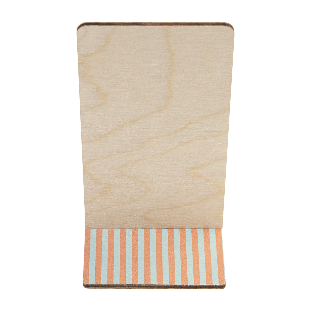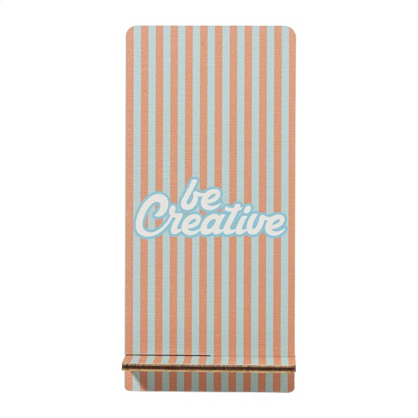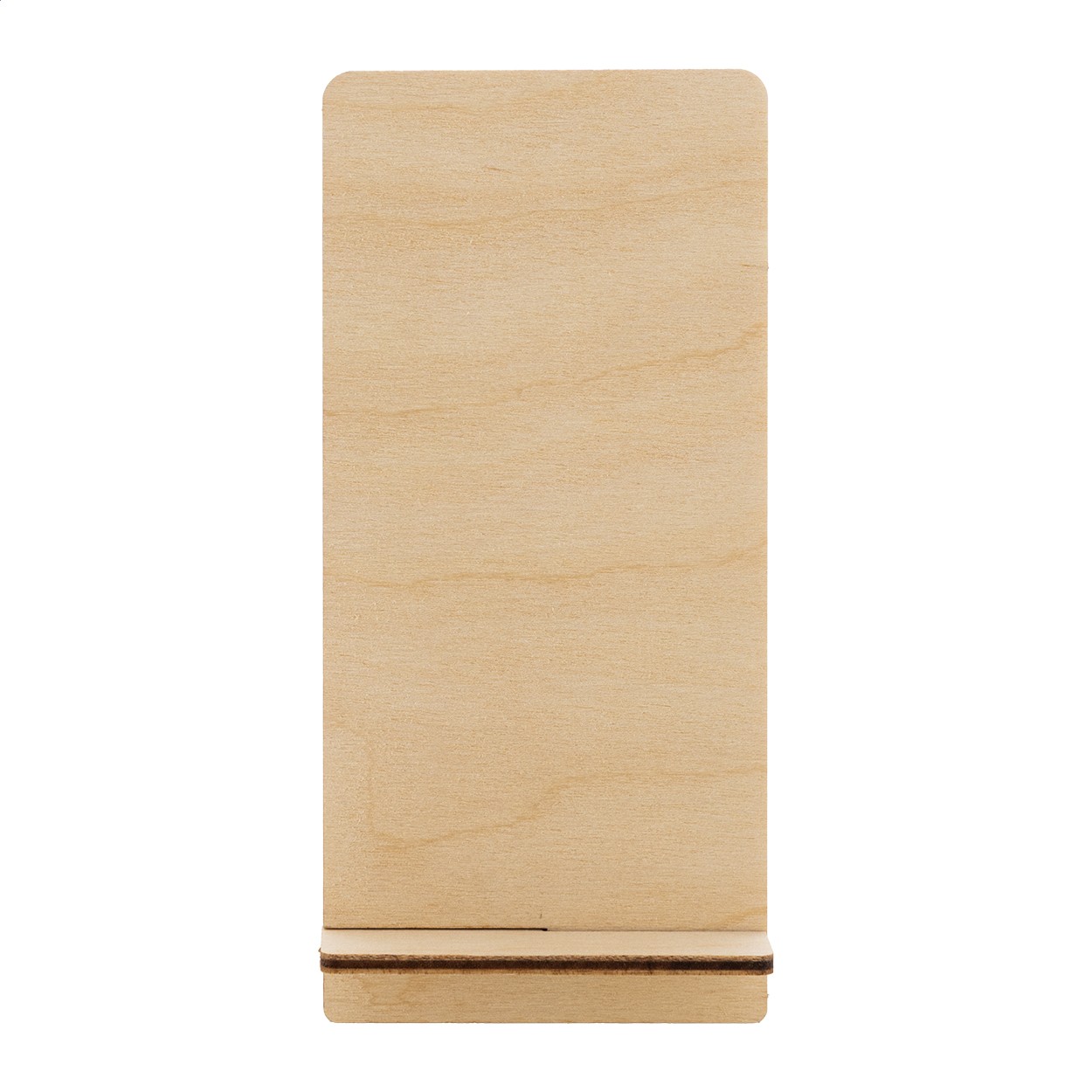 Suport pentru telefon mobil, de birou, personalizat, imprimat full colour, din placaj de mesteacăn. Prețul include imprimarea UV LED pe partea frontală. Livrat în pachet plat. Cantitate minimă de comandă: 50 bucăți.