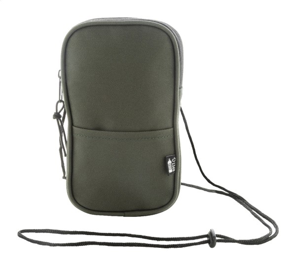 Geantă pentru telefon mobil, crossbody, impermeabilă din RPET, cu compartiment principal cu fermoar, buzunar frontal și șnur reglabil. Poliester RPET 600D acoperit cu PU, cu etichetă distinctivă RPET.