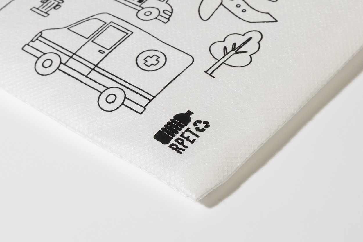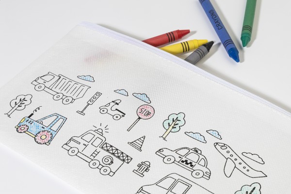 Penar cu fermoar, pentru colorat, din material nețesut RPET, cu 5 creioane colorate.