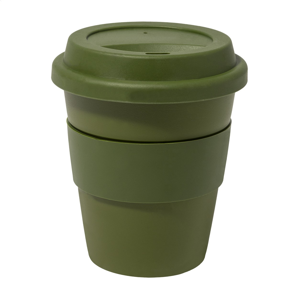 Pahar de voiaj, din plastic PP cu perete simplu, cu capac și mâner din TPE. 350 ml.