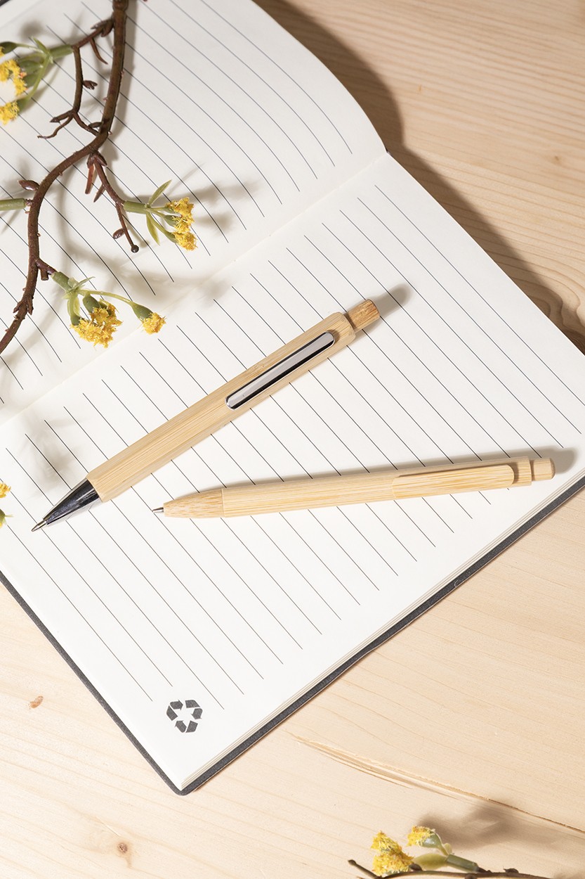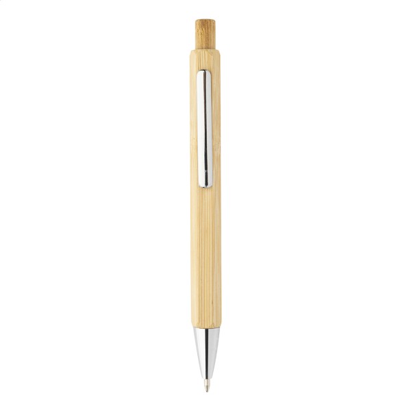 Pix hexagonal din bambus, cu piese cromate. Cu mină albastră.