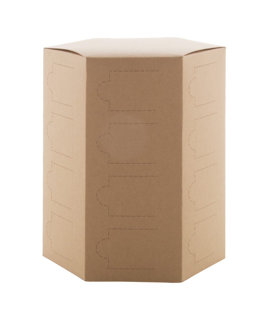 Calendar de Advent hexagonal, realizat la comandă, imprimat color, din hârtie kraft, cu 24 de compartimente. Se livreaza ambalat plat, fara dulciuri. MOQ: 50 buc.