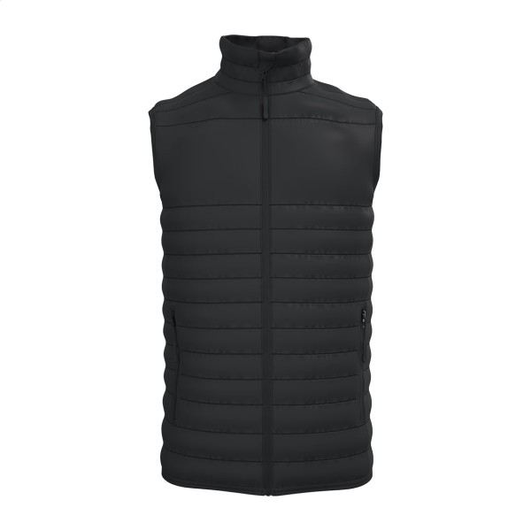 Vestă căptușită și matlasată, cu fermoar și buzunare laterale cu fermoar. Exterior: 100% poliester 290T. Căptușeală: 100% poliester. Produs marca iDeal Basic.