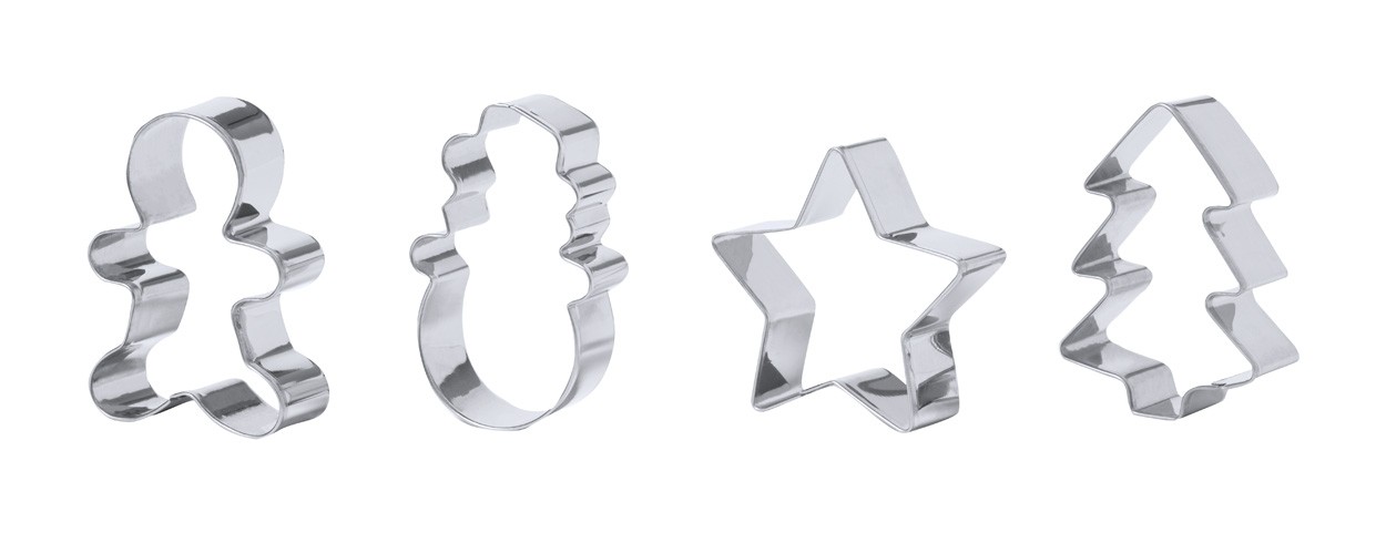 Set de vase de copt, pentru Crăciun, cu sucitor din lemn și 4 forme de prăjituri, din oțel inoxidabil.