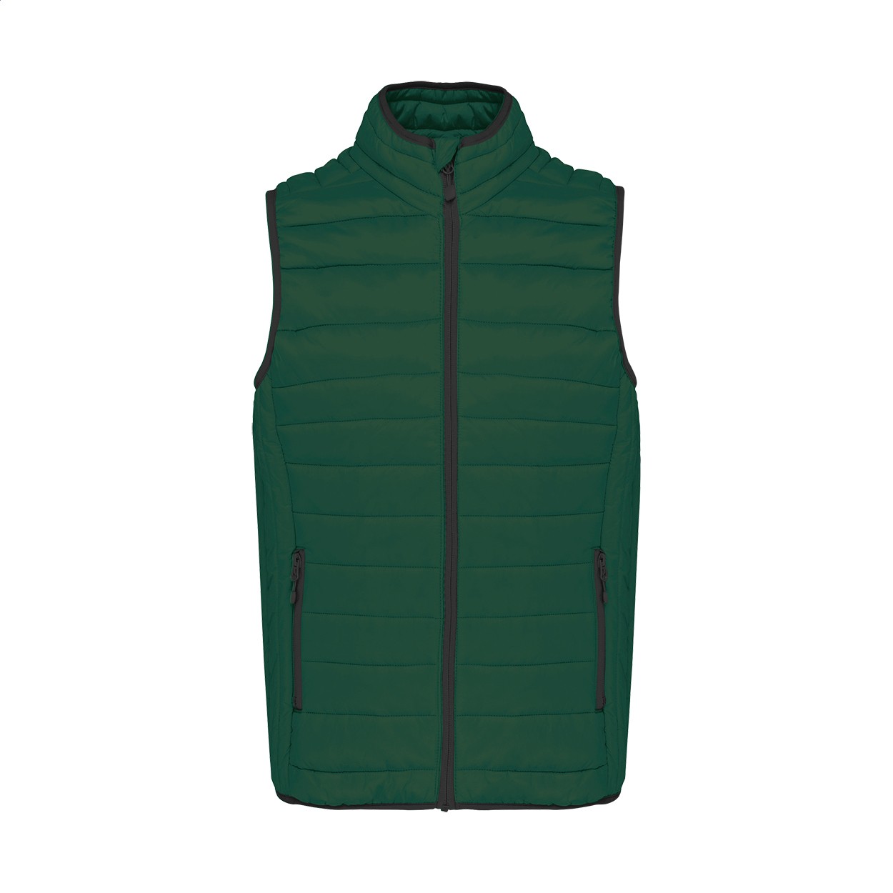 Vestă termică matlasată, căptușită și cu fermoar, cu buzunare laterale cu fermoar. 100% poliamidă. Produs marca Kariban.