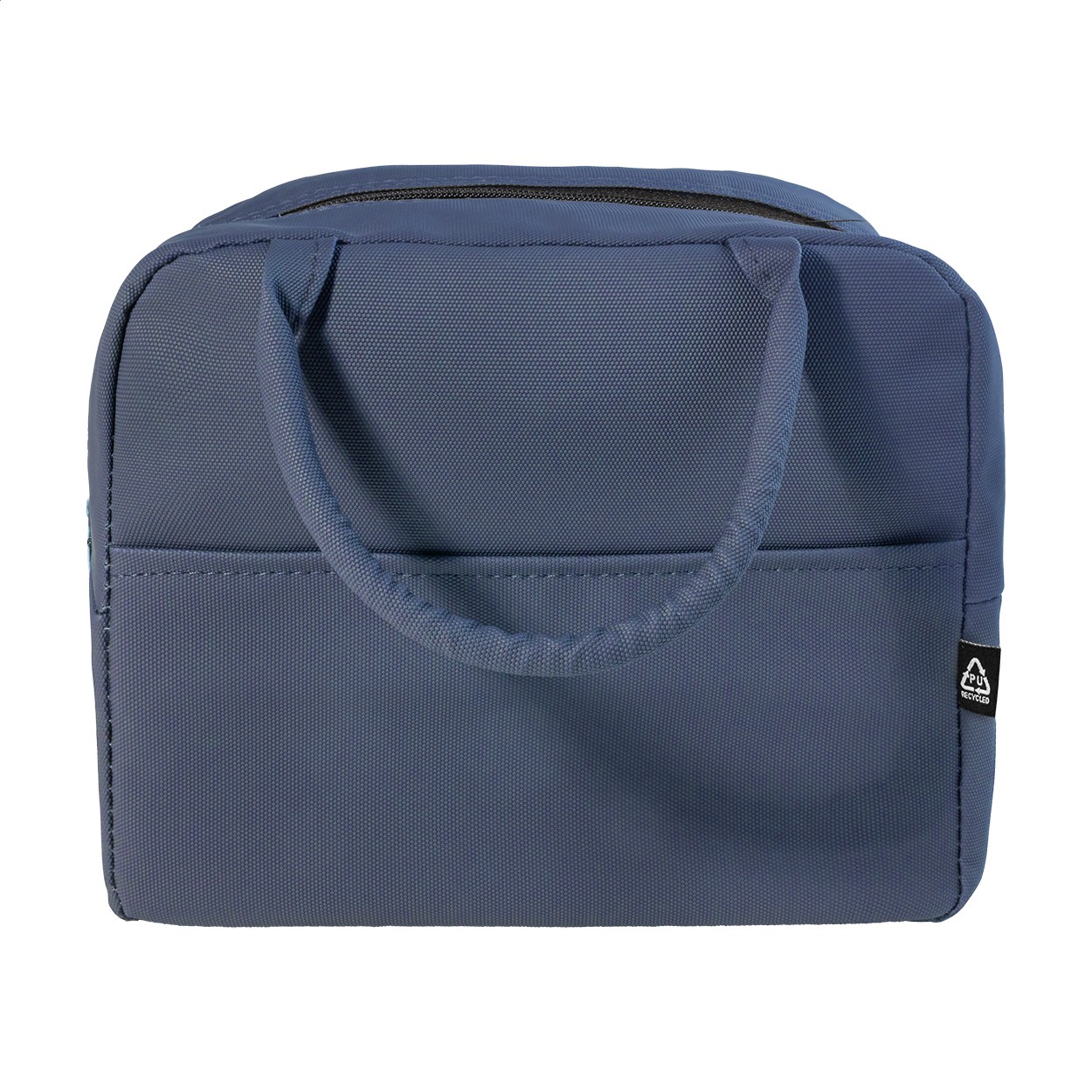Geantă termoizolantă, din piele PU reciclată, moale, cu fermoar, buzunar frontal și căptușeală din aluminiu. Cu etichetă distinctivă din PU reciclat.