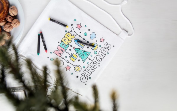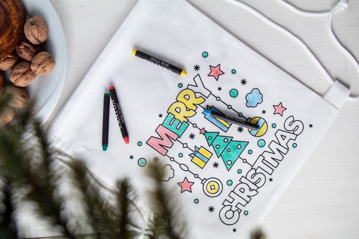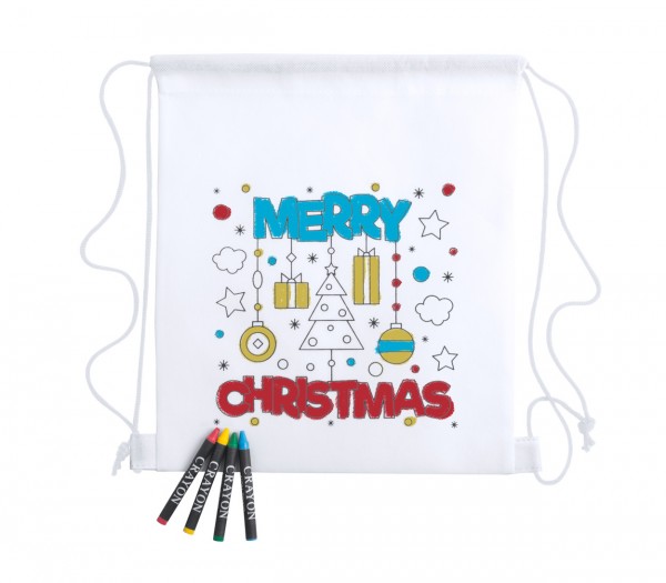 Rucsac de colorat cu model de Crăciun pentru copii, cu 4 creioane cerate, din material nețesut 80 g/m².