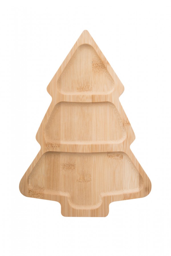 Platou cu gustări, din bambus, în formă de brad.