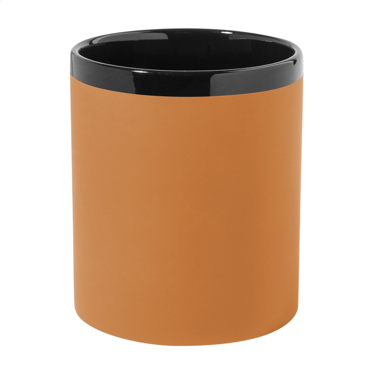 Cana din ceramică, cu finisaj cauciucat moale la atingere și interior și margine negre, 300 ml. Cu acoperire specială pentru gravare, logo-ul gravat se potrivește cu culoarea interiorului. În cutie din hârtie kraft.