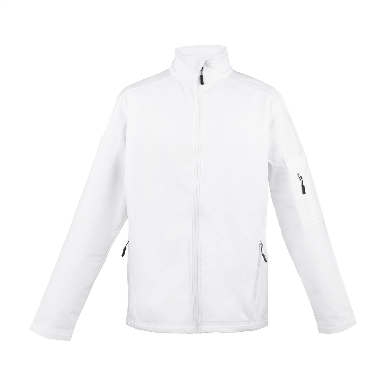Jacheta softshell, cu trei straturi, respirabilă, rezistentă la vânt și impermeabilă, cu fermoar, cu buzunare laterale și pe mâneci. Exterior: 92% poliester și 8% elastan cu membrană respirabilă. Interior: 100% poliester micro polar fleece. Produs marca Legend Classics.