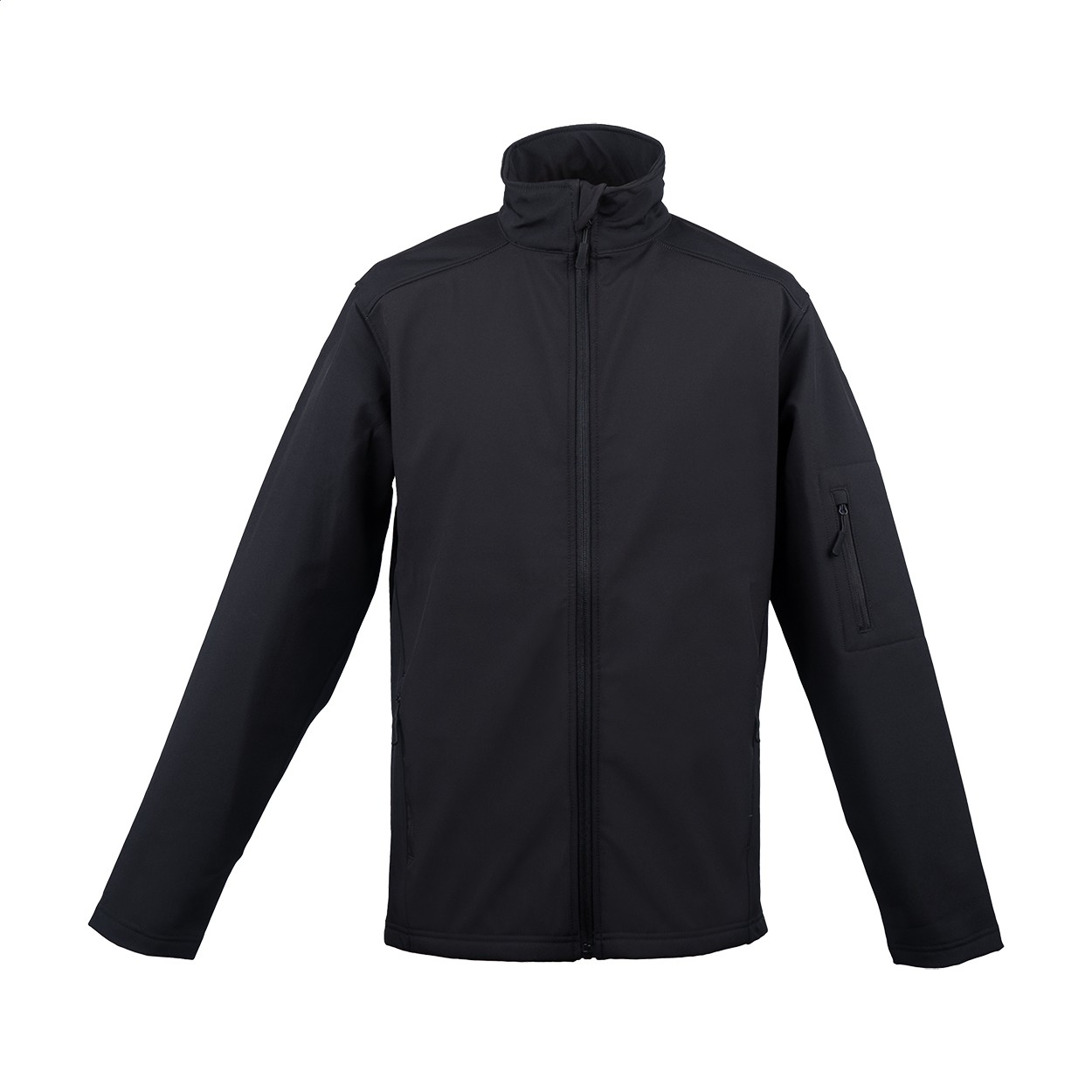 Jacheta softshell, cu trei straturi, respirabilă, rezistentă la vânt și impermeabilă, cu fermoar, cu buzunare laterale și pe mâneci. Exterior: 92% poliester și 8% elastan cu membrană respirabilă. Interior: 100% poliester micro polar fleece. Produs marca Legend Classics.