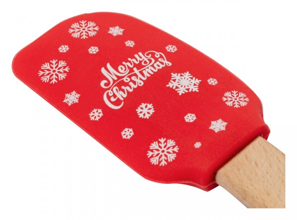 Spatulă de silicon pentru bucătărie, de Crăciun, cu mâner din lemn.