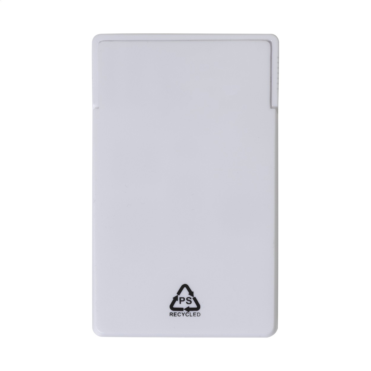 Trusă compactă de cusut de călătorie în carcasă PS reciclată în formă de card. Include 6 fire colorate din poliester, foarfece, 2 ace de siguranță, 2 ace, 2 nasturi și un înfiletător de ace.