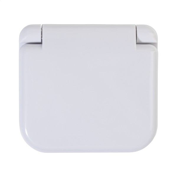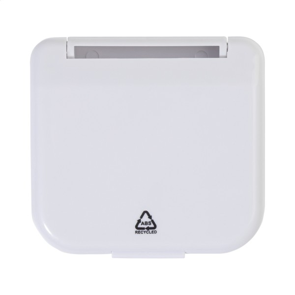 Trusă cuprinzătoare de cusut de călătorie în cutie ABS reciclată. Include 6 fire de poliester colorate, 3 ace, 3 ace cu cap, un ac de siguranță, 2 nasturi, 2 închizătoare cu clichet, un înfiletător de ace, pensete și foarfece.