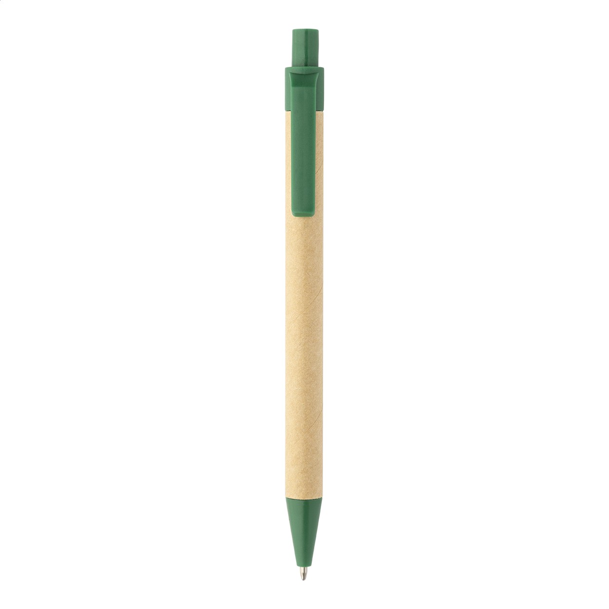 Caiet cu copertă din piele PU reciclată, cu 70 de file dictando, din hârtie reciclată și 125 de marcaje de pagină (în 5 culori diferite). Include hârtie reciclată și pix din PP reciclat cu refill albastru.