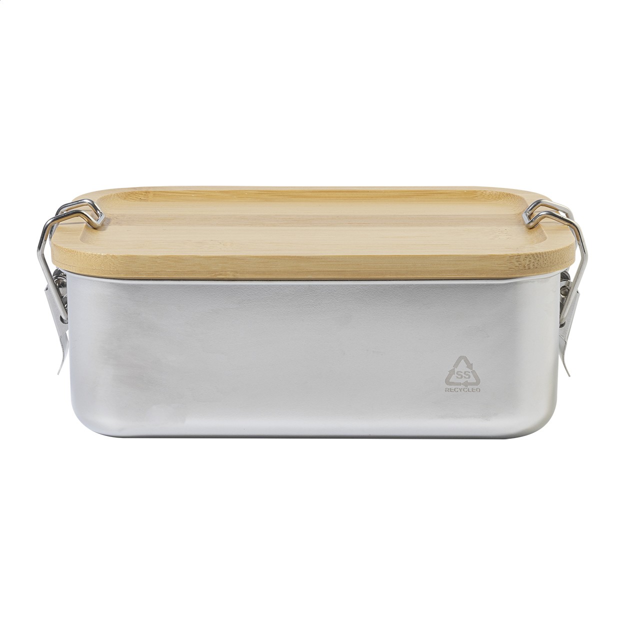 Cutie pentru prânz, din oțel inoxidabil reciclat, cu capac din bambus și închidere sigură cu cataramă, 750 ml.