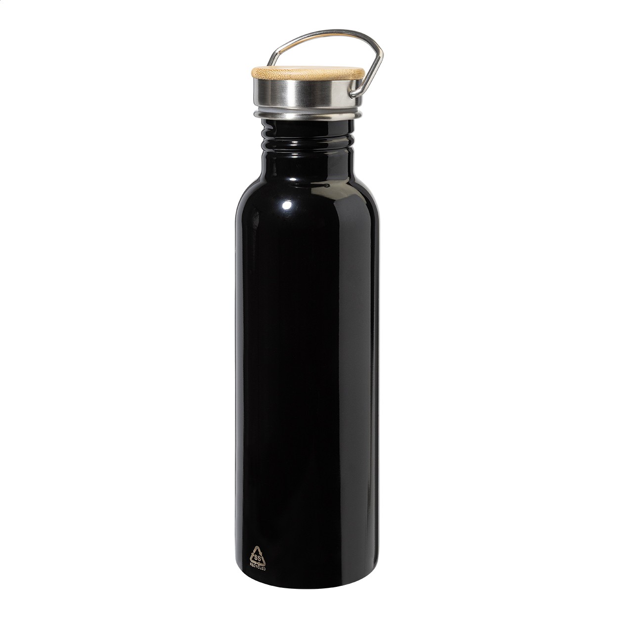 Sticlă din oțel inoxidabil reciclat, cu capac din bambus, 750 ml.