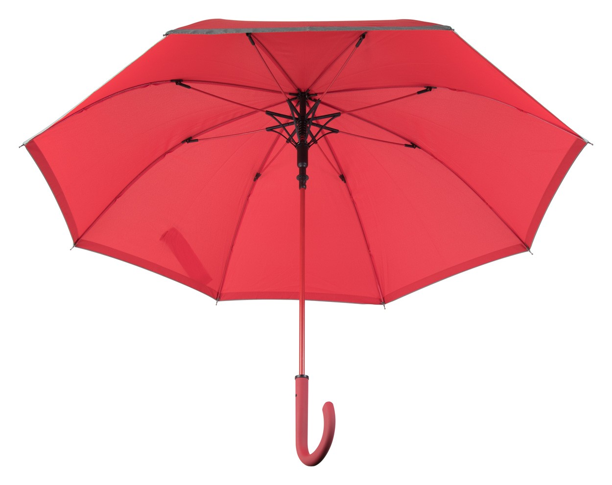 Umbrelă automată, antivânt, cu 8 panele, cu bandă reflectorizantă, mâner cauciucat, ax din metal colorat, cadru colorat din fibră de sticlă. 190T pongee. Numai pentru uz promoțional, produsul nu se califică drept Echipament de protecție personală.