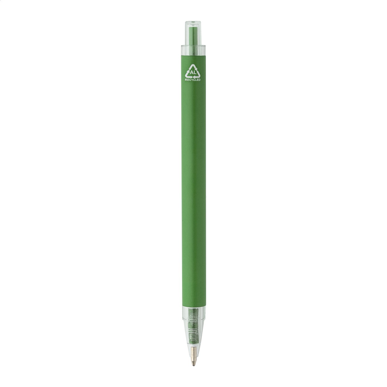Pix din aluminiu reciclat, cu corp mat și piese transparente din RPET. Cu mină albastră.