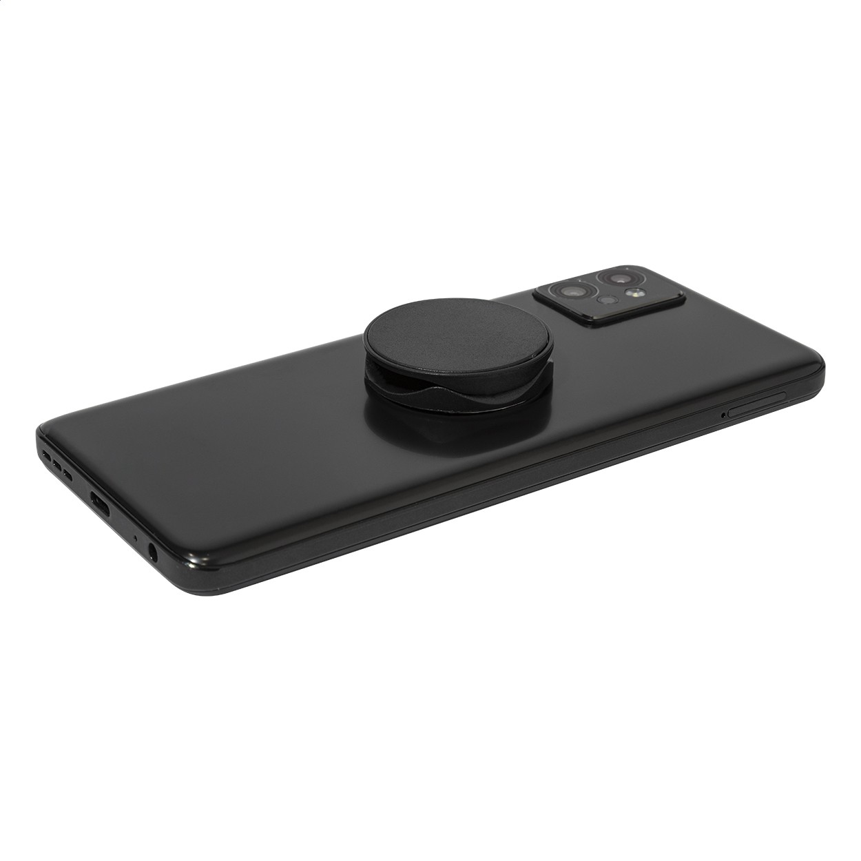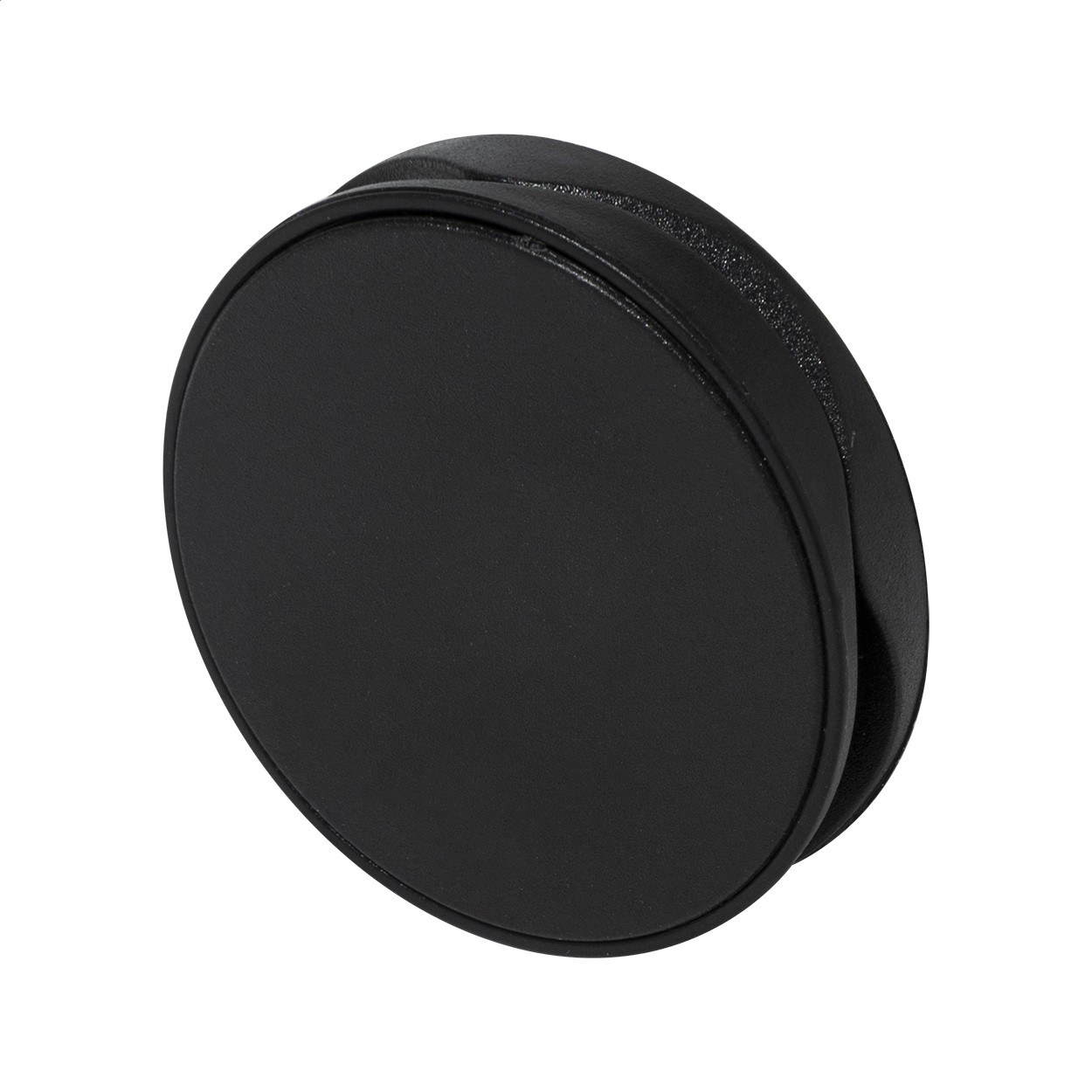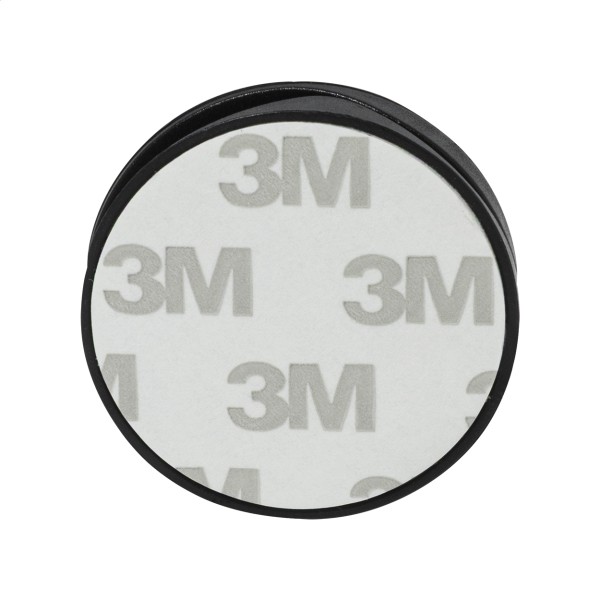 Suport telefon mobil, din ABS reciclat, de formă rotundă, cu bază autoadezivă.