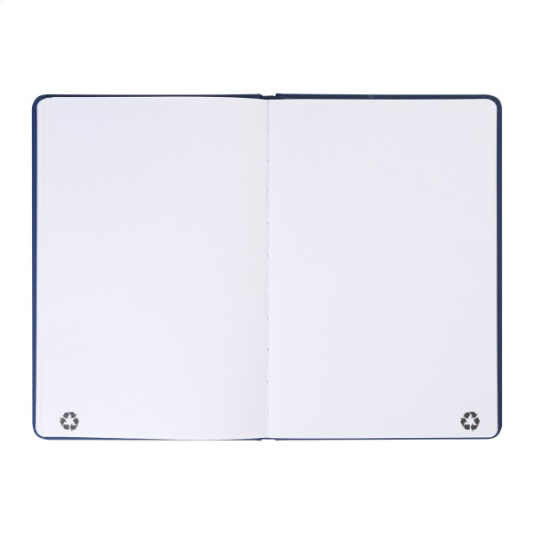 Caiet cu copertă din piele PU reciclată, cu 100 de foi veline din hârtie reciclată. Cu semn de carte de culoare asortată și bandă de cauciuc. Dimensiune A5.