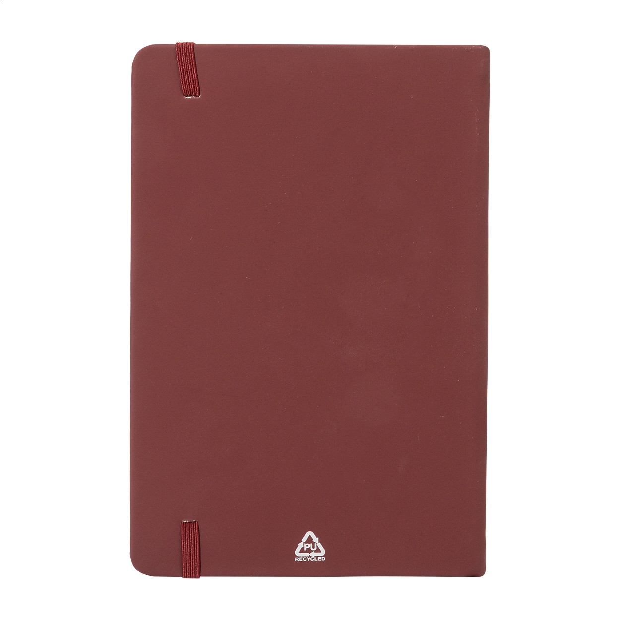 Caiet cu copertă din piele PU reciclată, cu 100 de foi veline din hârtie reciclată. Cu semn de carte de culoare asortată și bandă de cauciuc. Dimensiune A5.