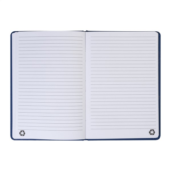 Caiet cu coperta din piele PU reciclată, cu 100 de foi dictando, din hârtie reciclată. Cu semn de carte de culoare asortată și bandă de cauciuc. Dimensiune A5.