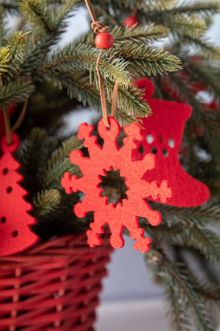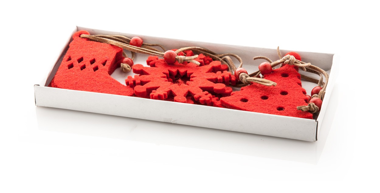3 feluri de decoraţiuni din poliester.Setul include 9 buc, livrate in cutie albă de hârtie.
