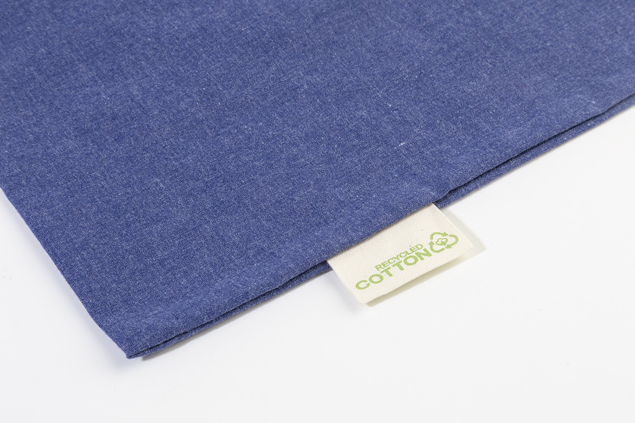 Sacoșă de cumpărături, cu mânere lungi, din 70% bumbac reciclat și 30% poliester RPET, 140 g/m². Cu etichetă distinctivă din bumbac reciclat.