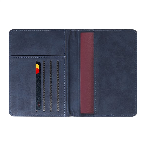 Set portpașaport și etichetă pentru bagaje, din piele PU reciclată. În cutie din hârtie kraft.