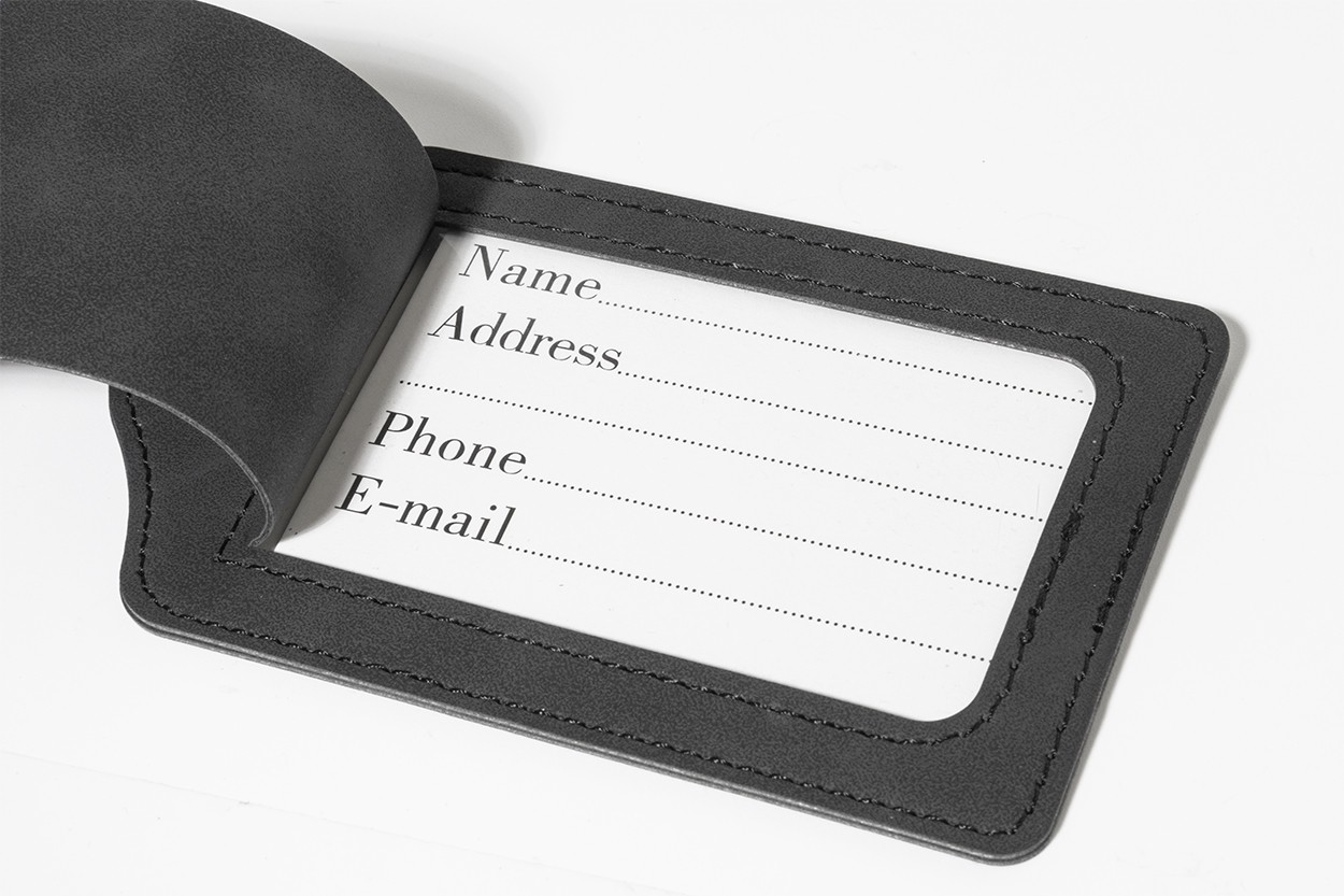 Set portpașaport și etichetă pentru bagaje, din piele PU reciclată. În cutie din hârtie kraft.
