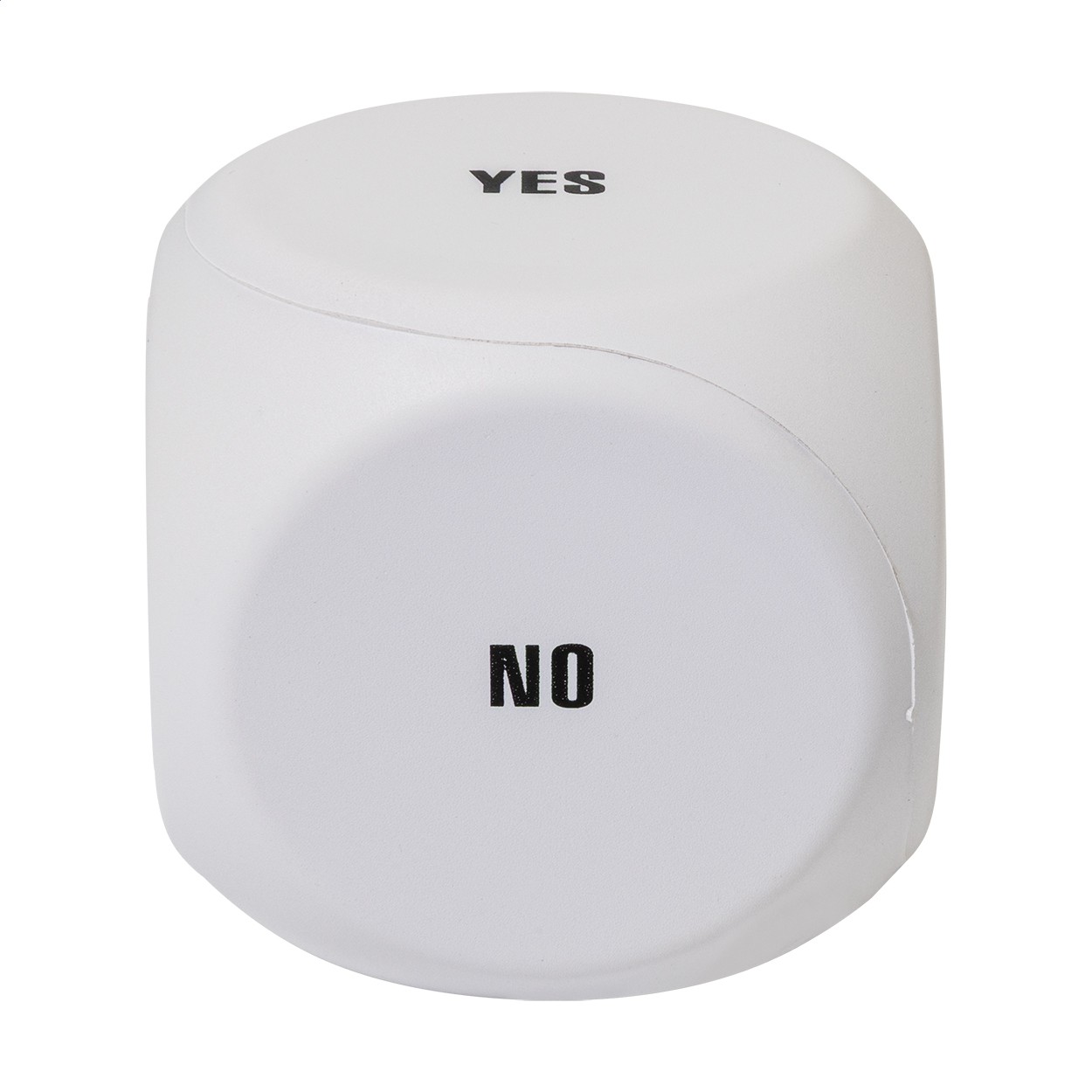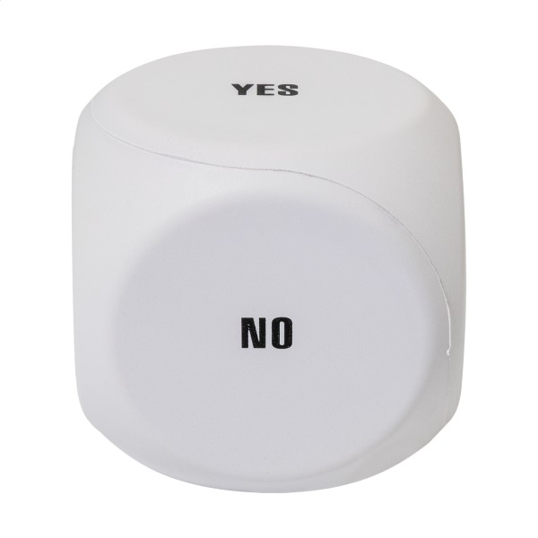 Jucărie antistres, în formă de zar, pentru luarea deciziilor, din spumă PU. Include următoarele mesaje: Ia o pauză, Mâine, Poate, Da, Nu și o parte goală pentru imprimare.