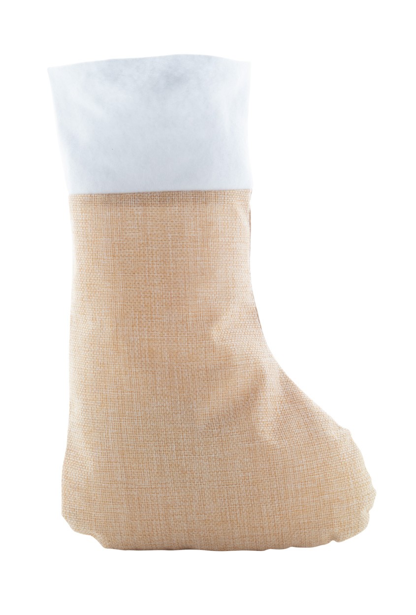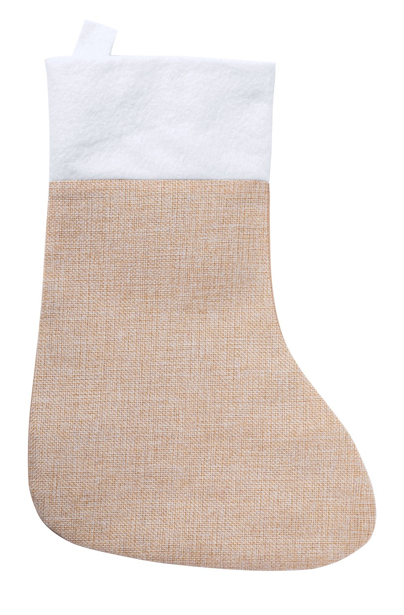 Ciorap de poliester de Crăciun cu partea superioară albă și partea inferioară de culoare naturală.